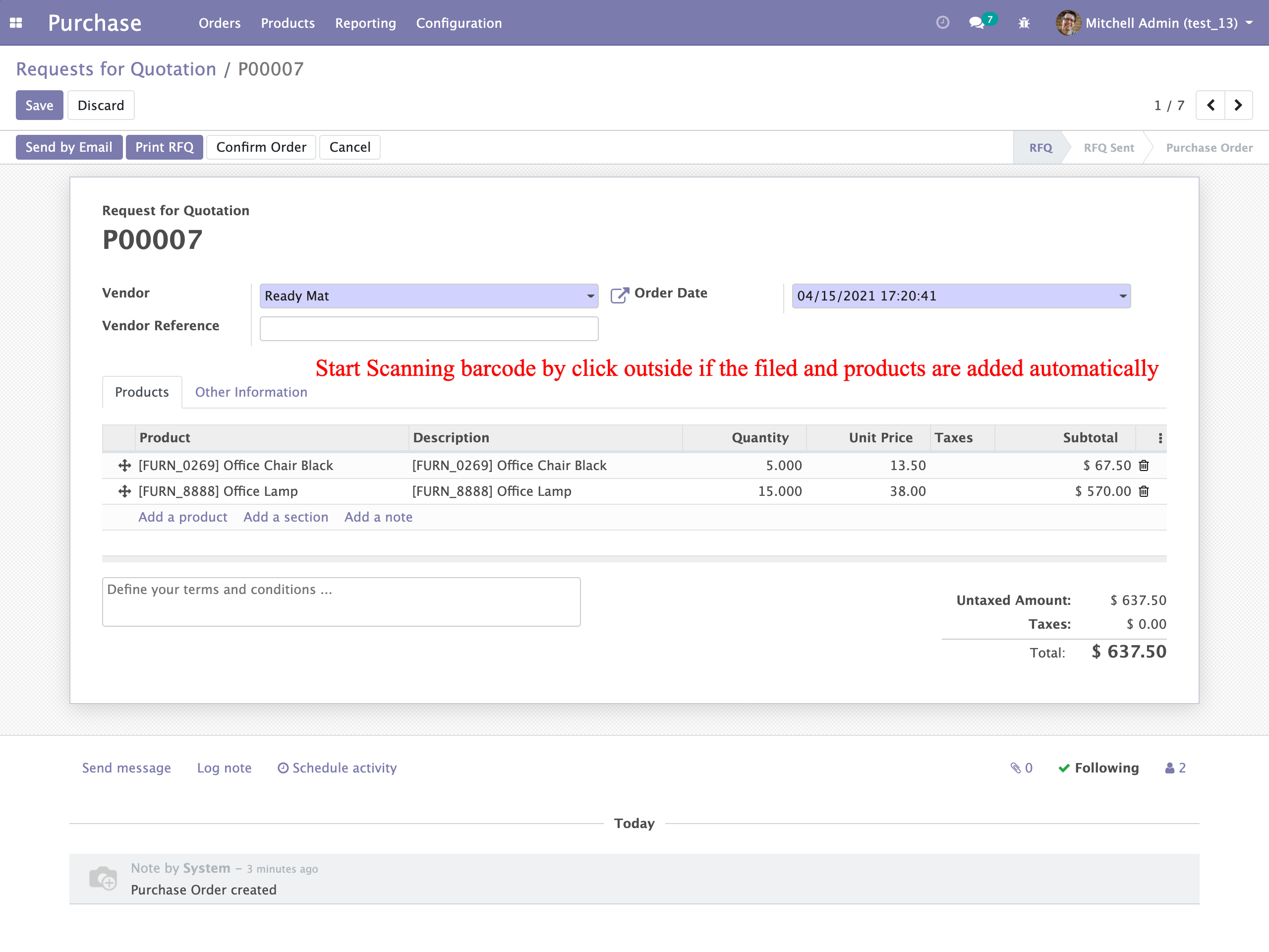 Add Products in Purchase Order by Scanning Barcode