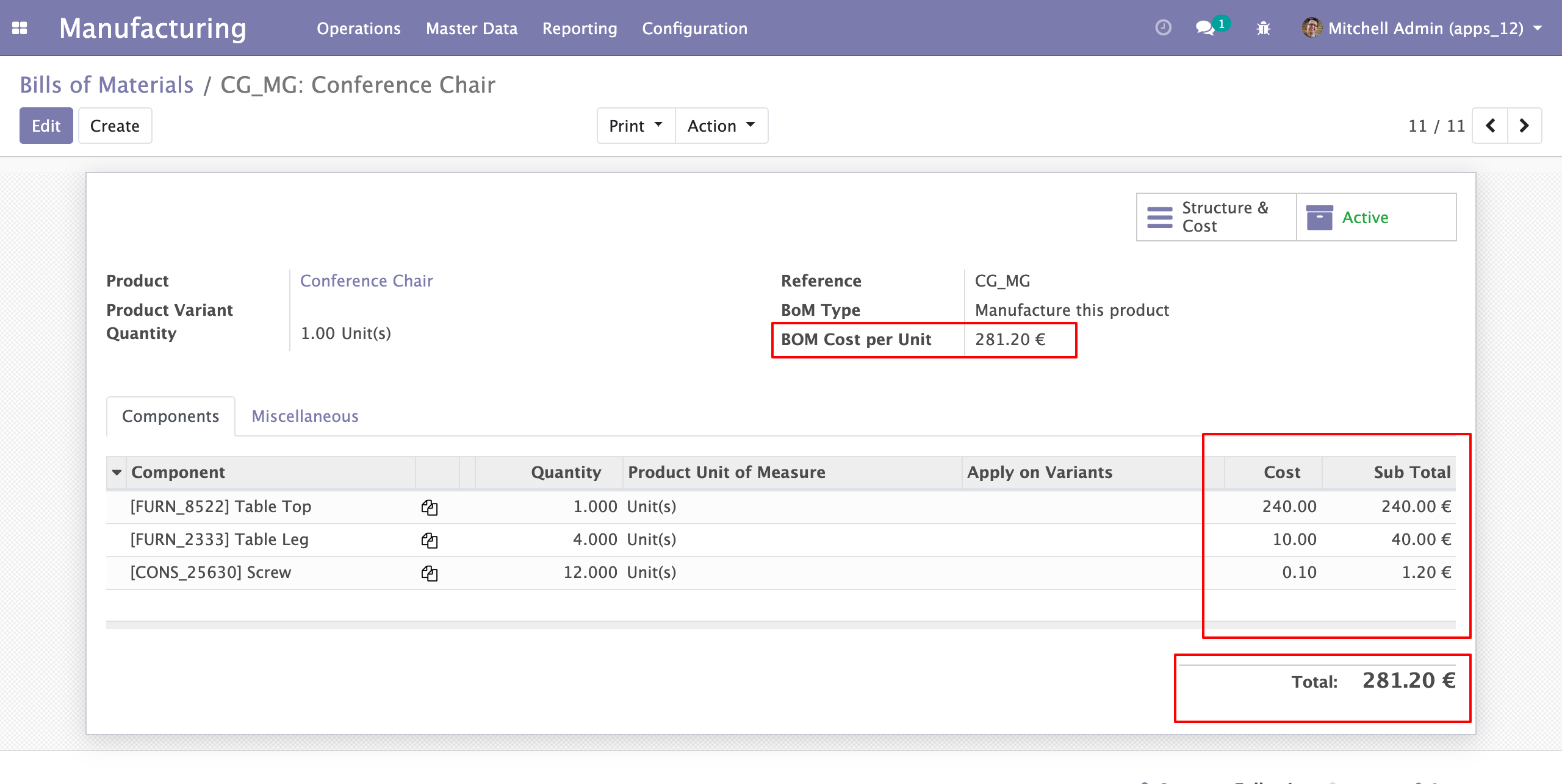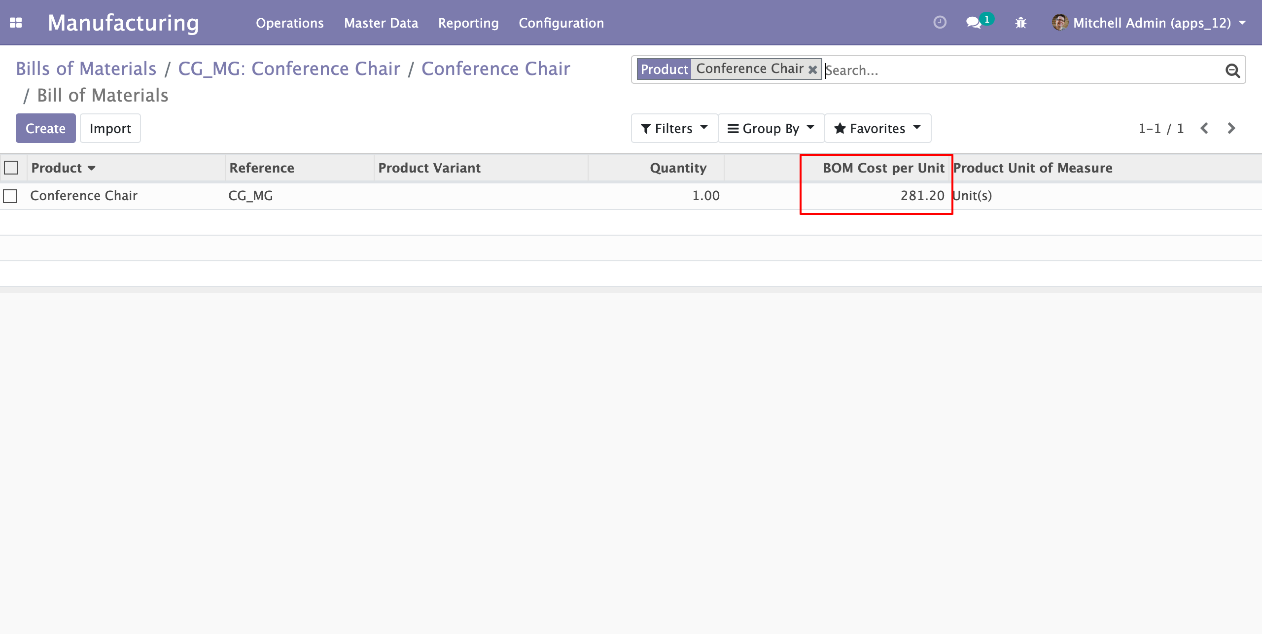- Allow user to add/view component cost and based on that user can view BOM Cost per Unit.