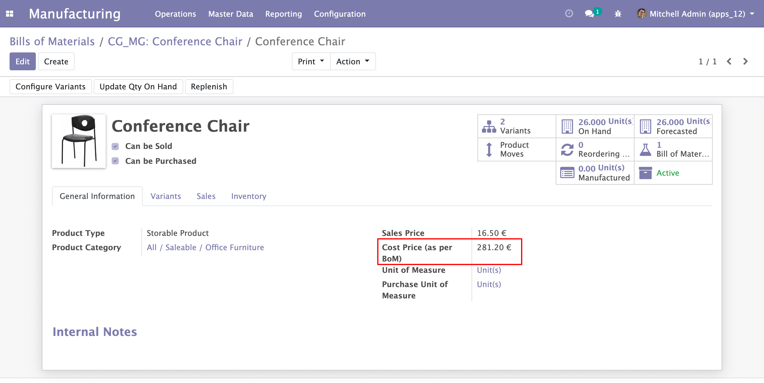- Allow user to view Cost Price (as per BoM) on Product Variant and Product Template Form.