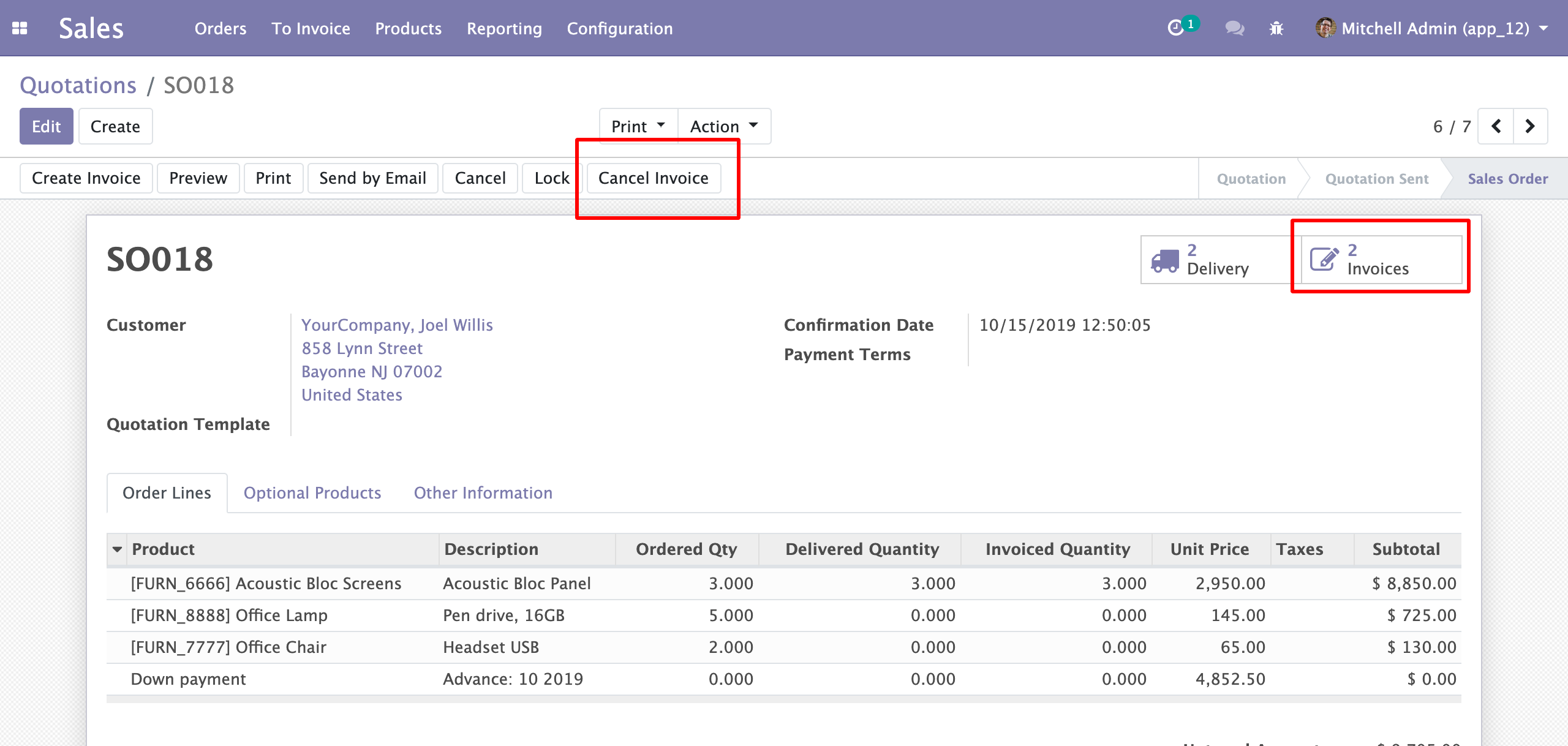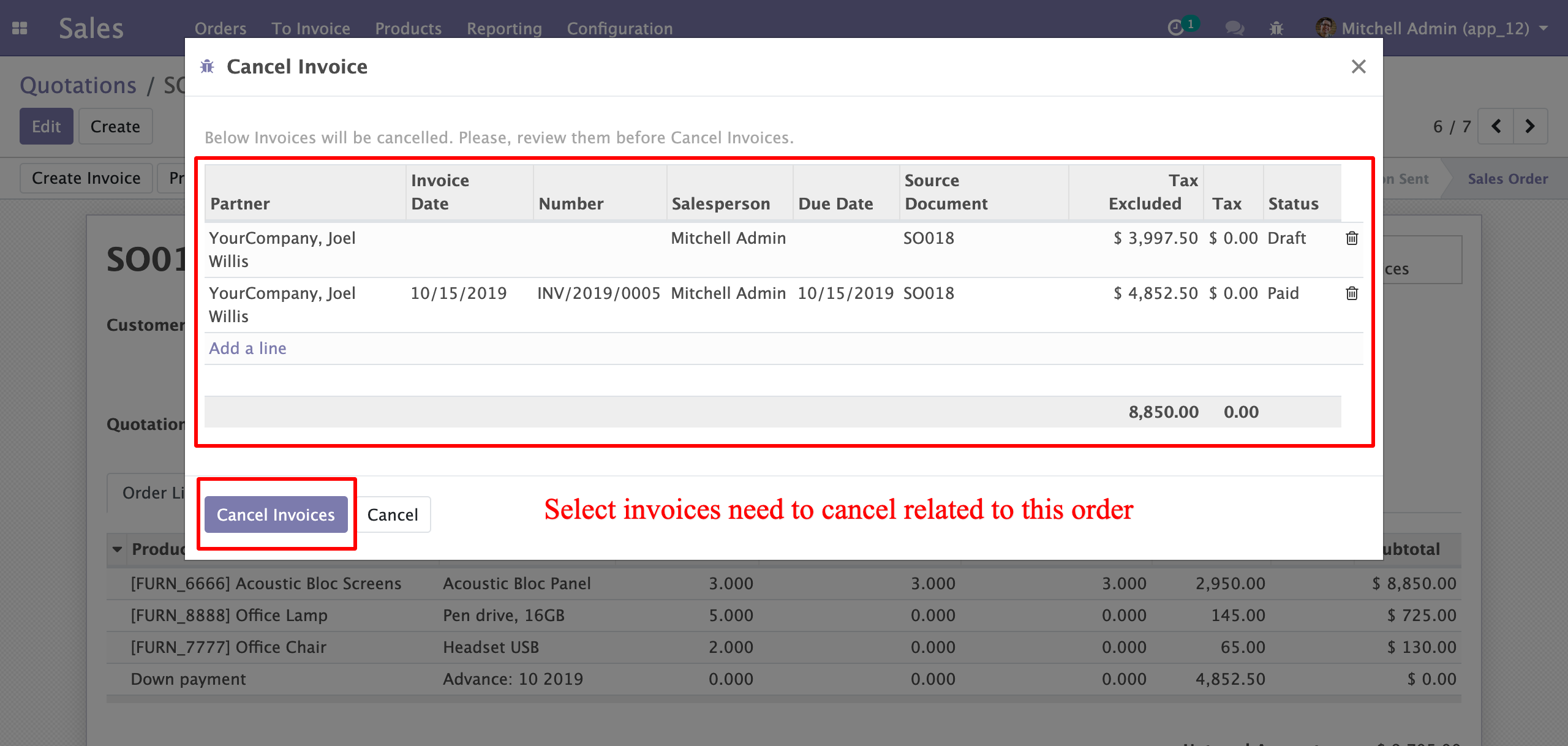 - This module allows to Cancel Invoices from sale order directly to user with group Cancel Invoice from Sales Order.