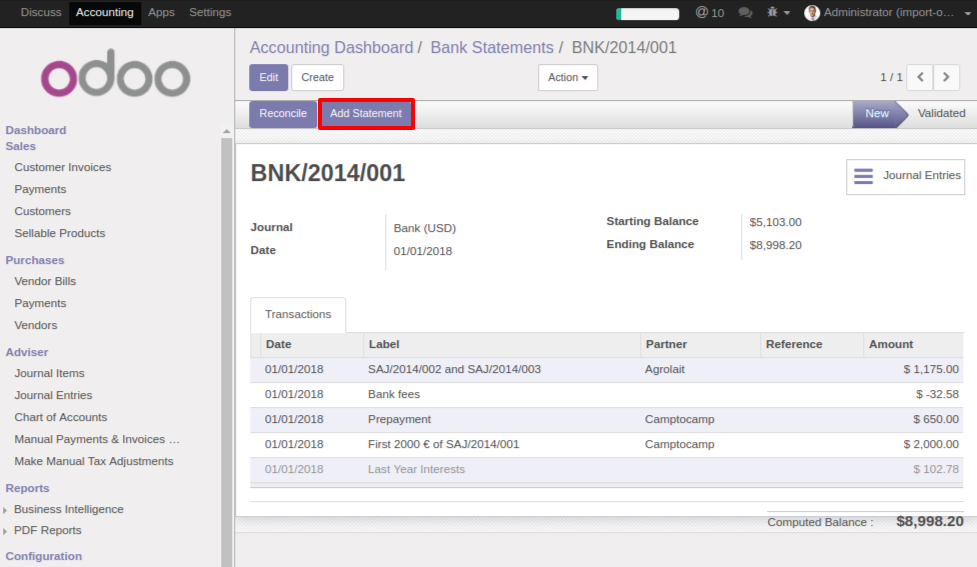 - Import Product, Customer/Vendor, Sales Order, Purchase Order, Customer Invoice/ Vendor Bill, Stock, Picking, bank Statement, Journal Items, Customer/Supplier Payment.