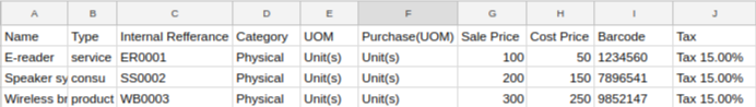 - Given below is the sample of import file, sample file available in this module.