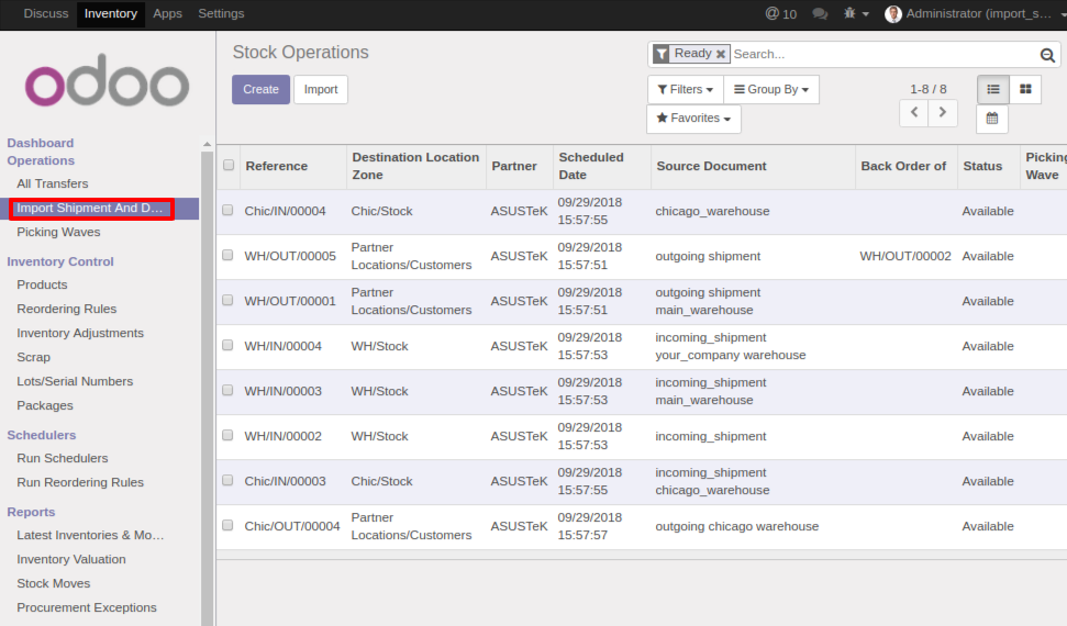 - You can Import Shipment/Delivery/Internal Transfer directly from file.