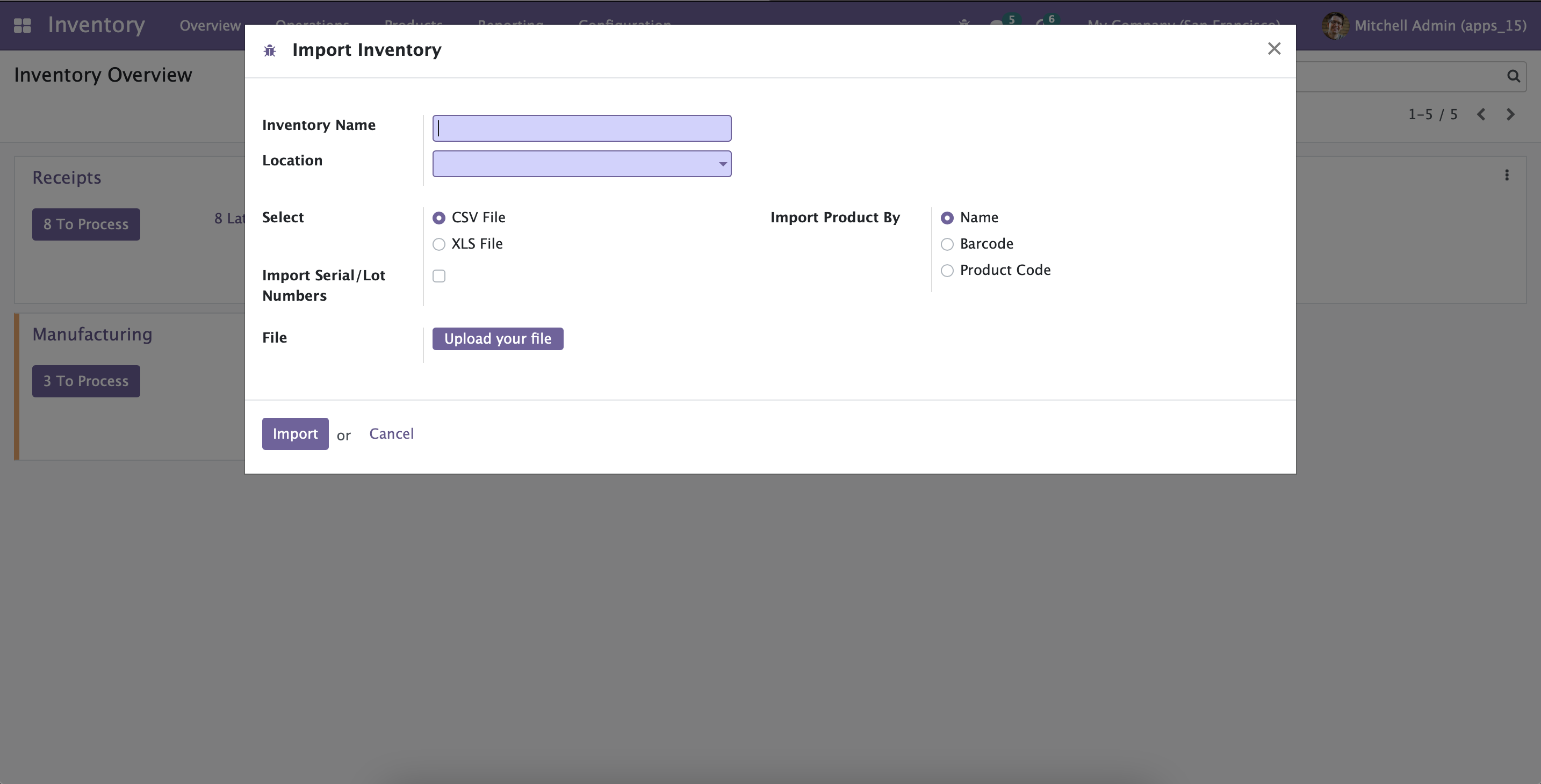 - When name, barcode and code selected in Import option, please select file that contains code of products.