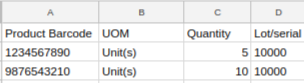 - If you want to import inventory with "Take Details From The sale orders" option then follow given XLS format.