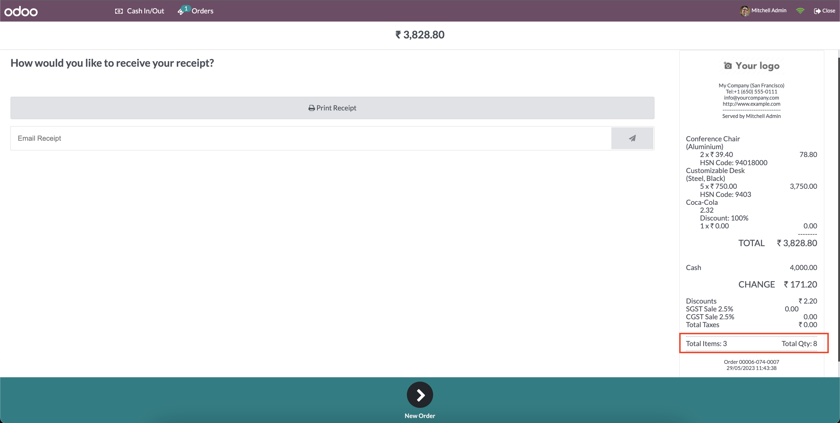 - Print Total Items and Qty in POS Receipt.