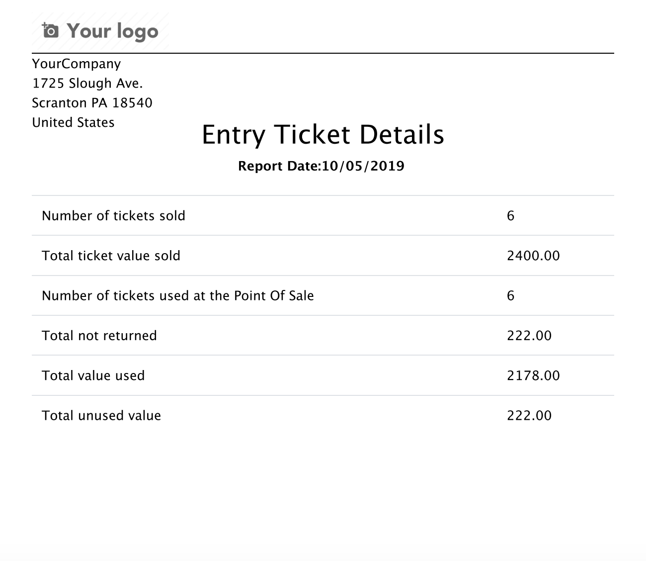 5. Entry Ticket Details Report