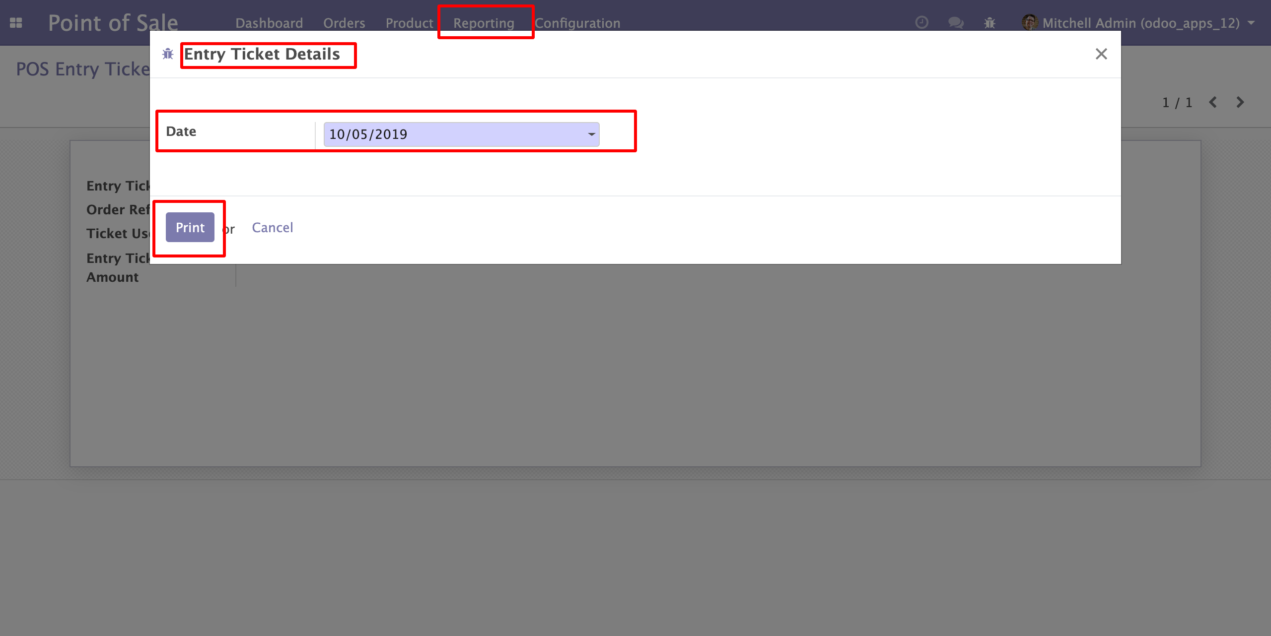 A). Point Of Sale >> Reporting >> POS Entry Ticket Select Report Date to print Entry Ticket Details.