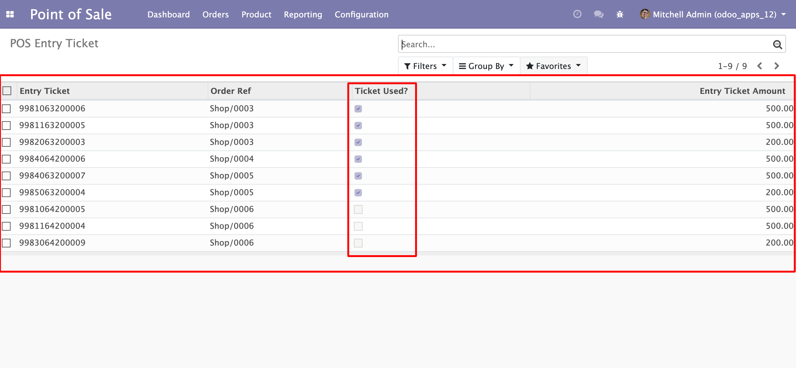 A). All POS Entry Ticket: Point Of Sale >> Configuration >> POS Entry Ticket
