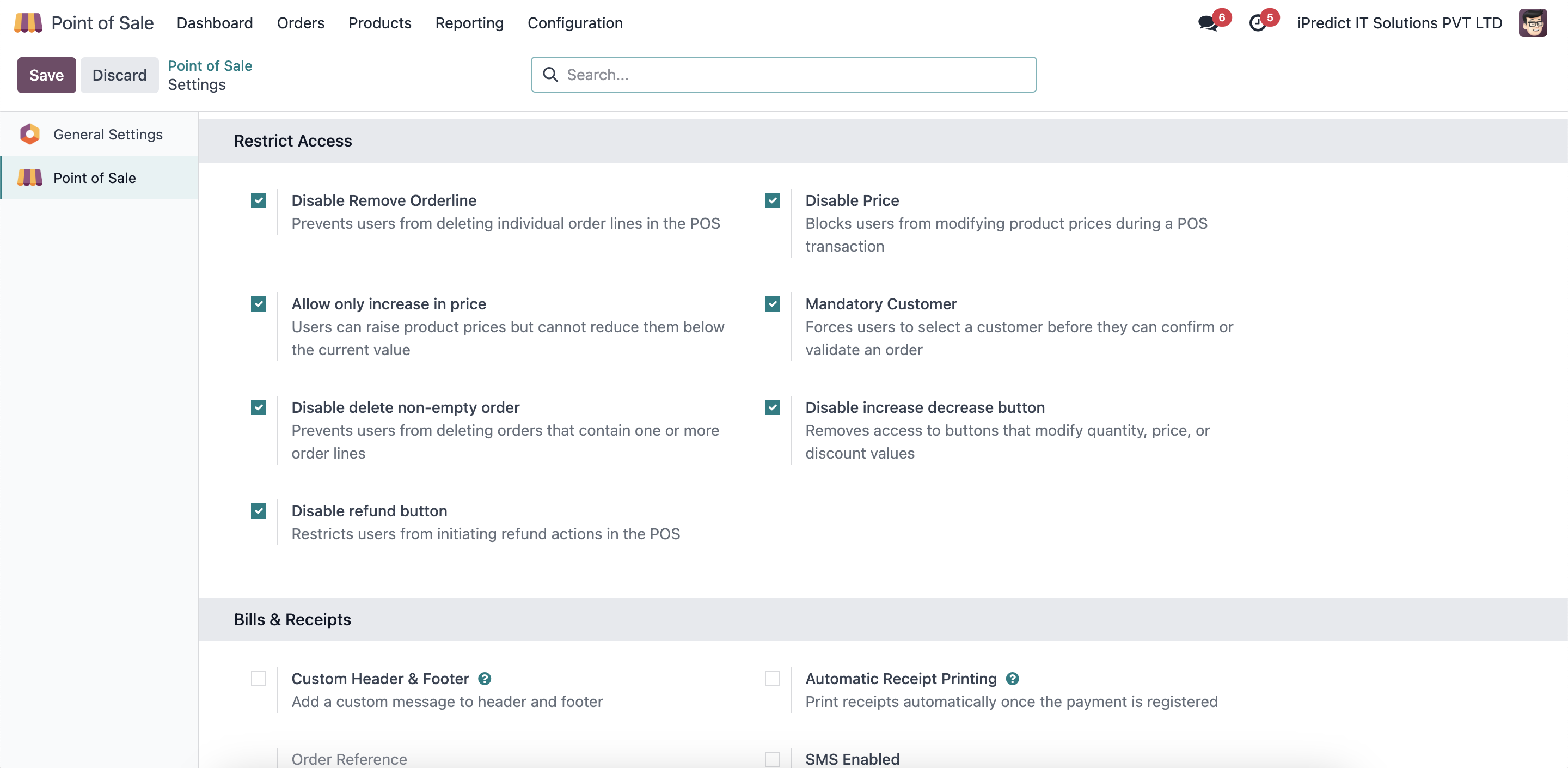 Restricts POS features based on user permissions, allowing administrators to enable or disable specific actions for each user.