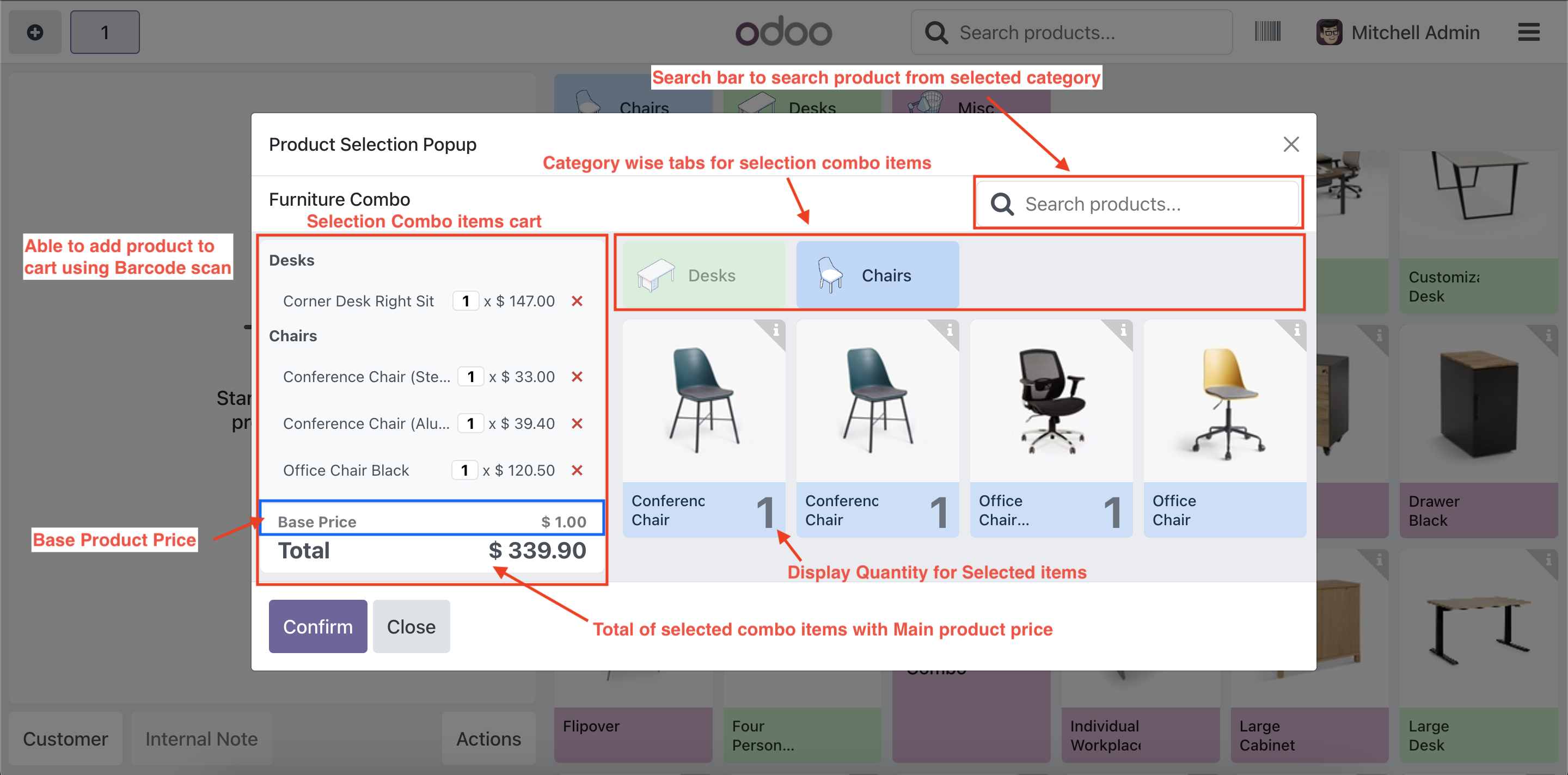 - Added option to search & scan for product from selection combo popup.