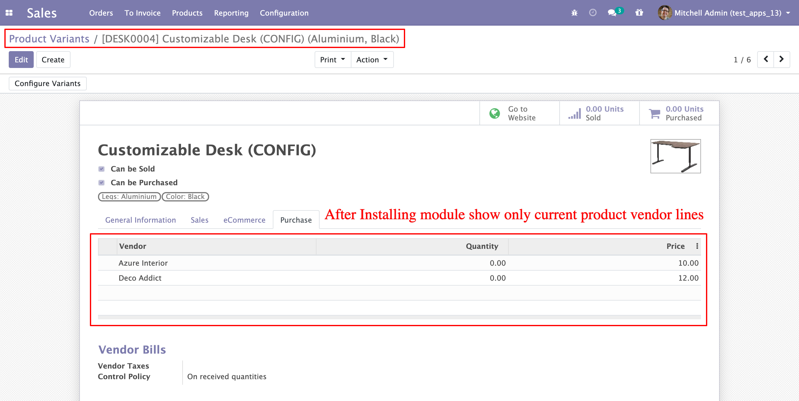 1. Show all Product variants line before install module