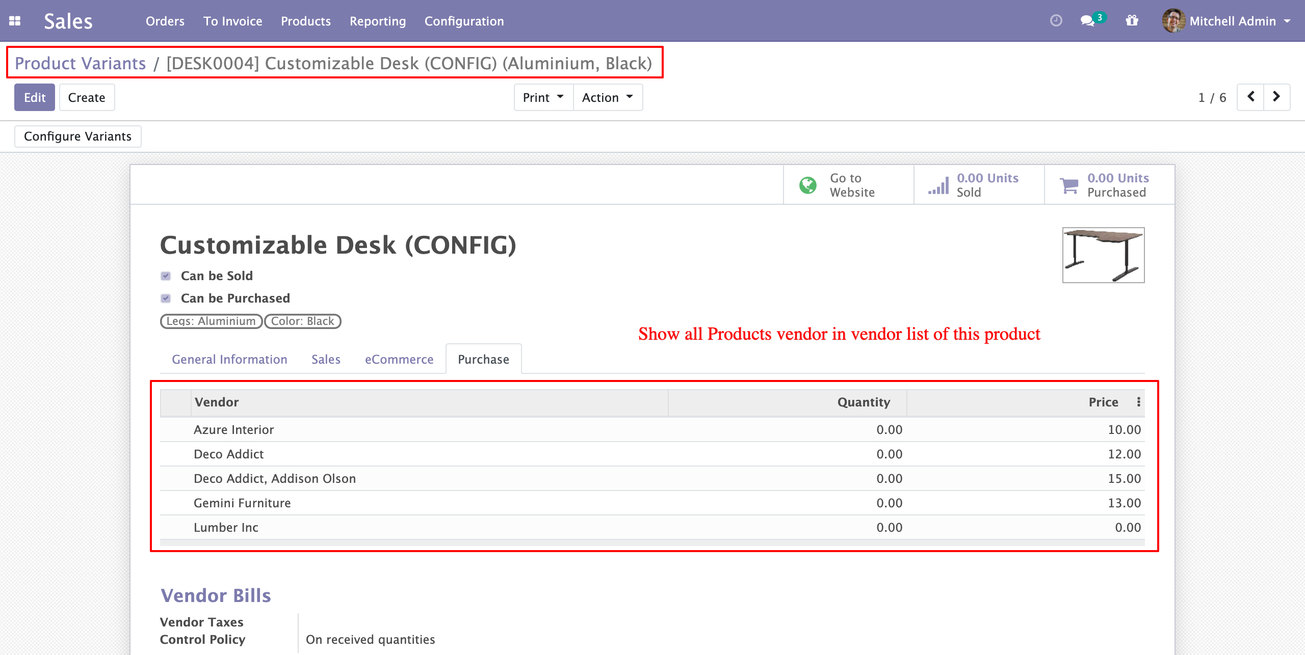 Purchase Vendor line per product