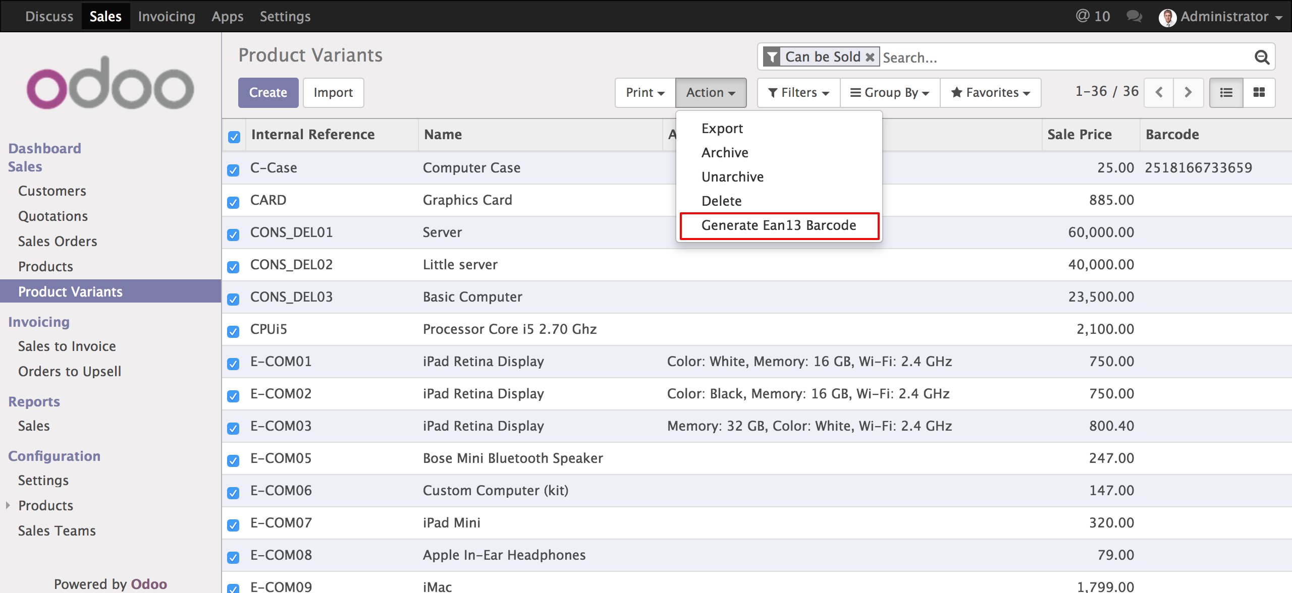 - You can also add or overwrite barcode by selecting products.