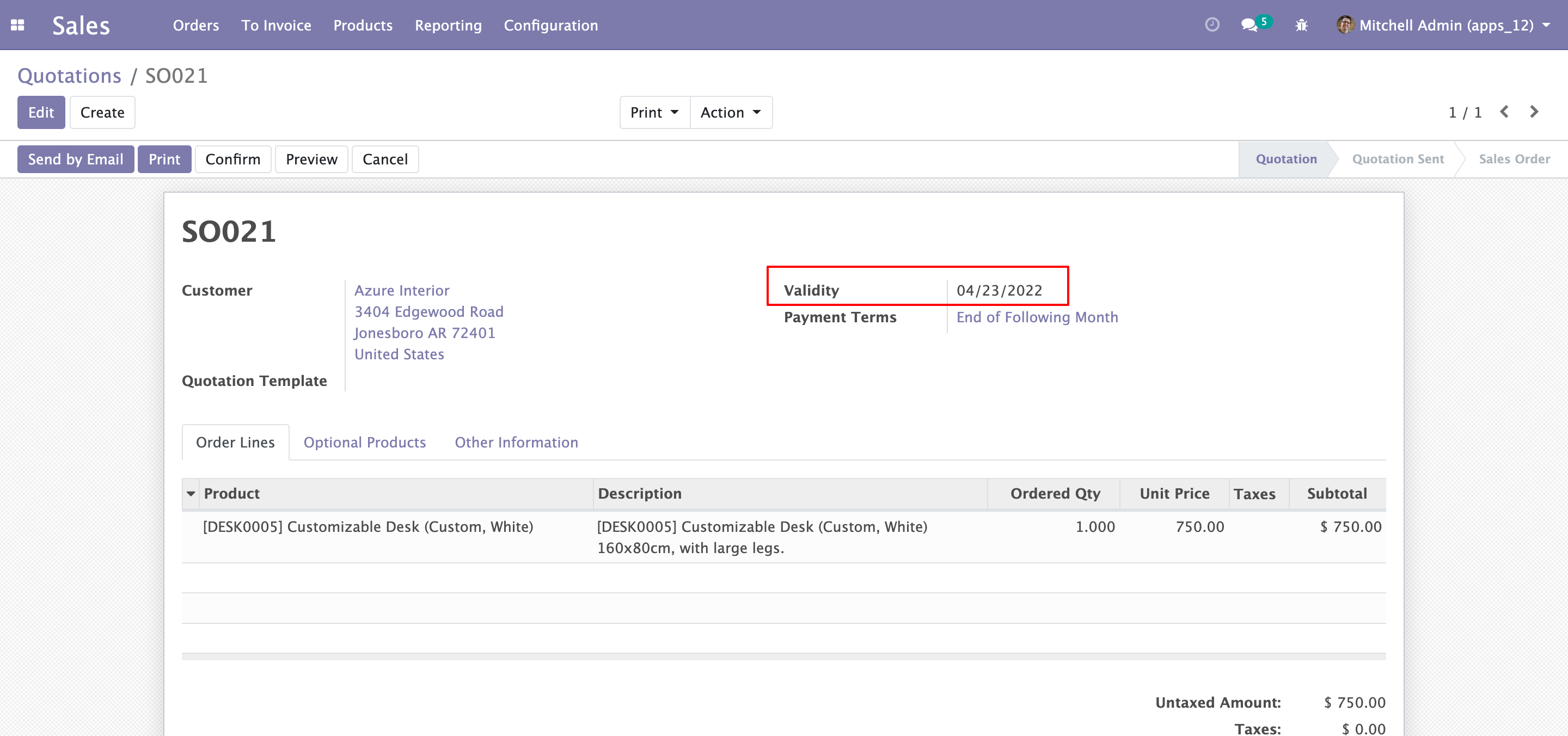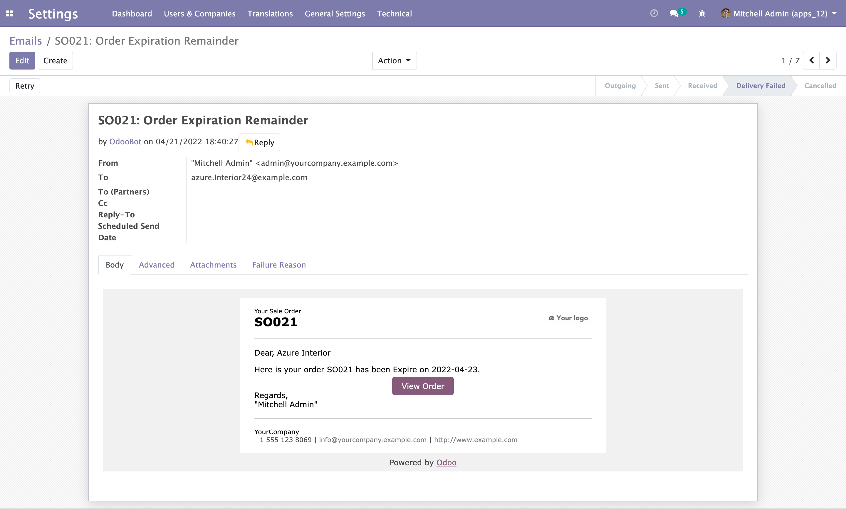 - Expiration email sent before days set in configuration with validity/expiration date.